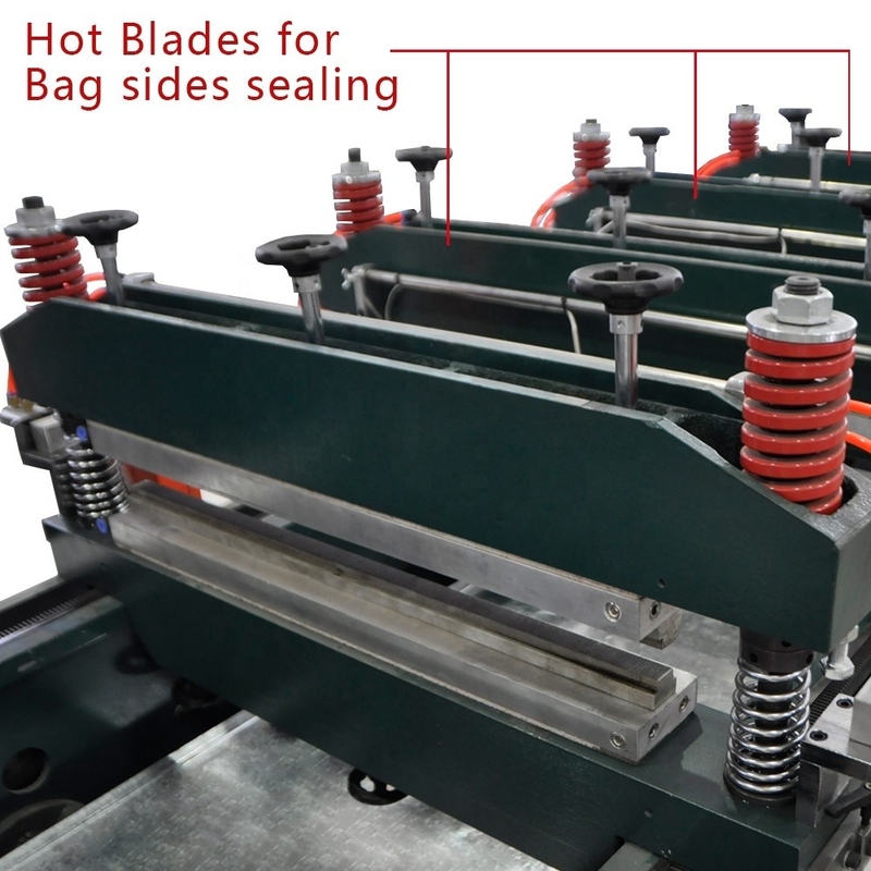 Nossas máquinas podem ser promovidas opcionalmente com as quatro lâminas calorosos automáticas, o pulverizador da colagem, o servo motor 5kw, a contagem do número do saco e a pilha transportando para a embalagem fácil.
